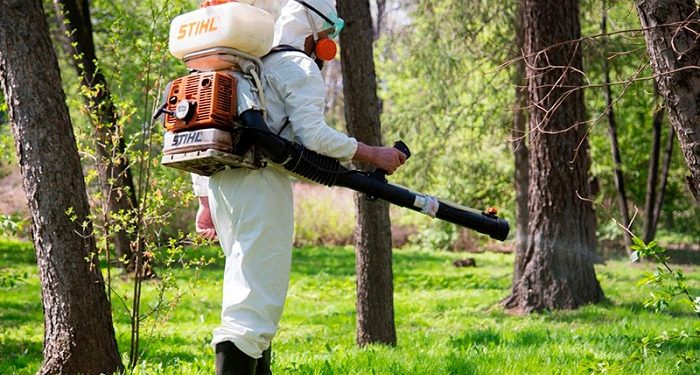 - с помощью специального оборудования средства распыляются на участке.