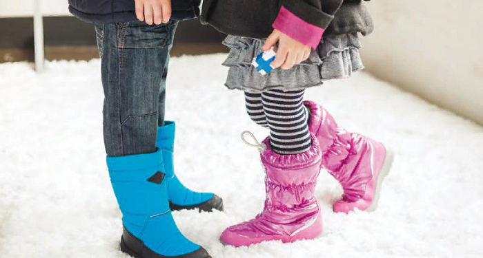 Дети любят снег, лепить снежки, нырять в сугробы, кататься на санях. С первым снегом важно приобрести обувь для мальчиков и девочек.